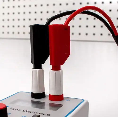 The 1044 connections are via safety terminals that are compatible with 4 mm shrouded plugs, standard plugs, bare wires, and spade terminals.