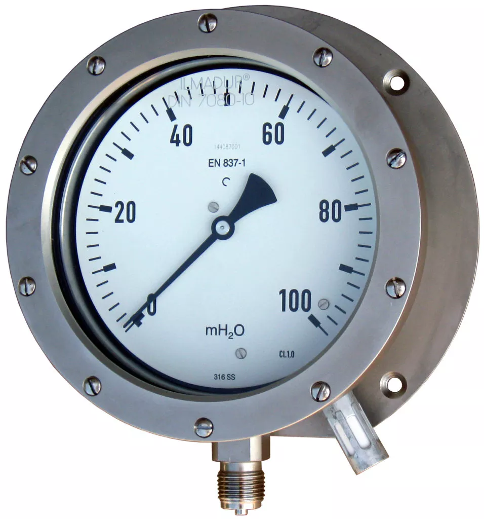 For measuring the pressure (depth) inside decompression chambers, living chambers, hyperbaric chambers, where exact measurement is critical for the safety of divers.