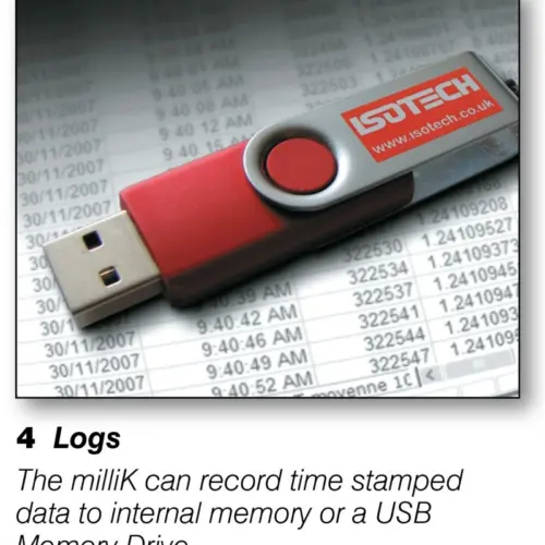In addition to low uncertainty measurements from Reference Standards and Industrial sensor measurement the milliK can control Isotech temperature sources, sequencing through a programmable list of temperature set points and log data to internal memory or a USB drive.