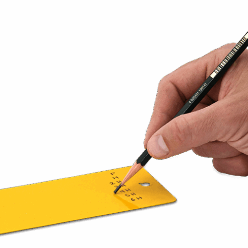 - Custom aluminum pencil sharpener specifically designed for the Pencil Hardness Test—includes 5 and 6 mm reference marks for precision graphite length