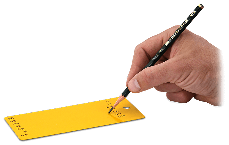 Determines the film hardness by pencil test (Wolff-Wilborn) in accordance with ISO 15184 and ASTM D3363