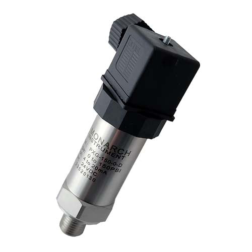 The PX Universal Pressure Transmitters use a diffused silicon pressure sensor to sense an applied pressure. Through internal application-specific integrated circuits (ASIC), a millivolt signal is converted and transmitted into a standardized electrical output signal, such as 4-20 mA. This output can be directly used by control systems or data acquisition equipment (such as Monarch Instrument’s DataChart™ DC1250). The compact, lightweight design is easy to install. Simply connect the PX Pressure Transmitter directly to a computer interface card, control instrument, smart meter, or PLC. Long-distance transmission can use current output.