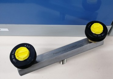 This accessory allows you to save time! We have developed this control cube to allow you to calibrate 2 manometers at the same time. It has a compact and robust design, and is equipped with 2 interchangeable connectors (to choose from among our 17 standard connectors). The gap allows you to connect pressure gauges up to diameter 150.